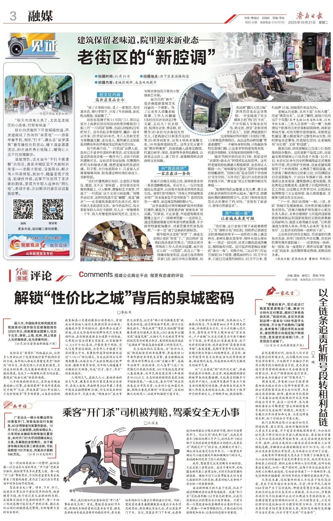 济南日报10月21日讯 “秋天的济南太美了,尤其是老城区的小街巷,特别有味道!”